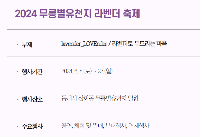 동해에 살다 온 사람이 얘기해 주는 아래 꿀팁들도 챙겨가세요. 함께 라벤더꽃축제의 매력에 빠지러 출발~!